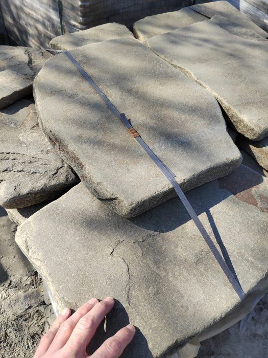 • Kamenclub.ru: Песчаник пластушка светло-серый (4,0 - 6,0 см)  купить в Нововоронеже плитняк - пластушка светло-серый песчаник 12600 руб/м3   фото КАМЕНЬ КЛУБ