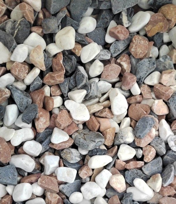 Мраморная крошка (щебень галтованный микс:белый-черный-розовый-медовый) фр.5-10 мм.