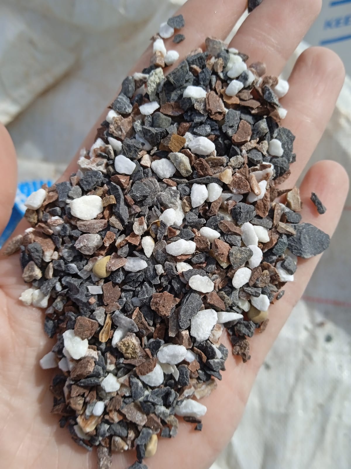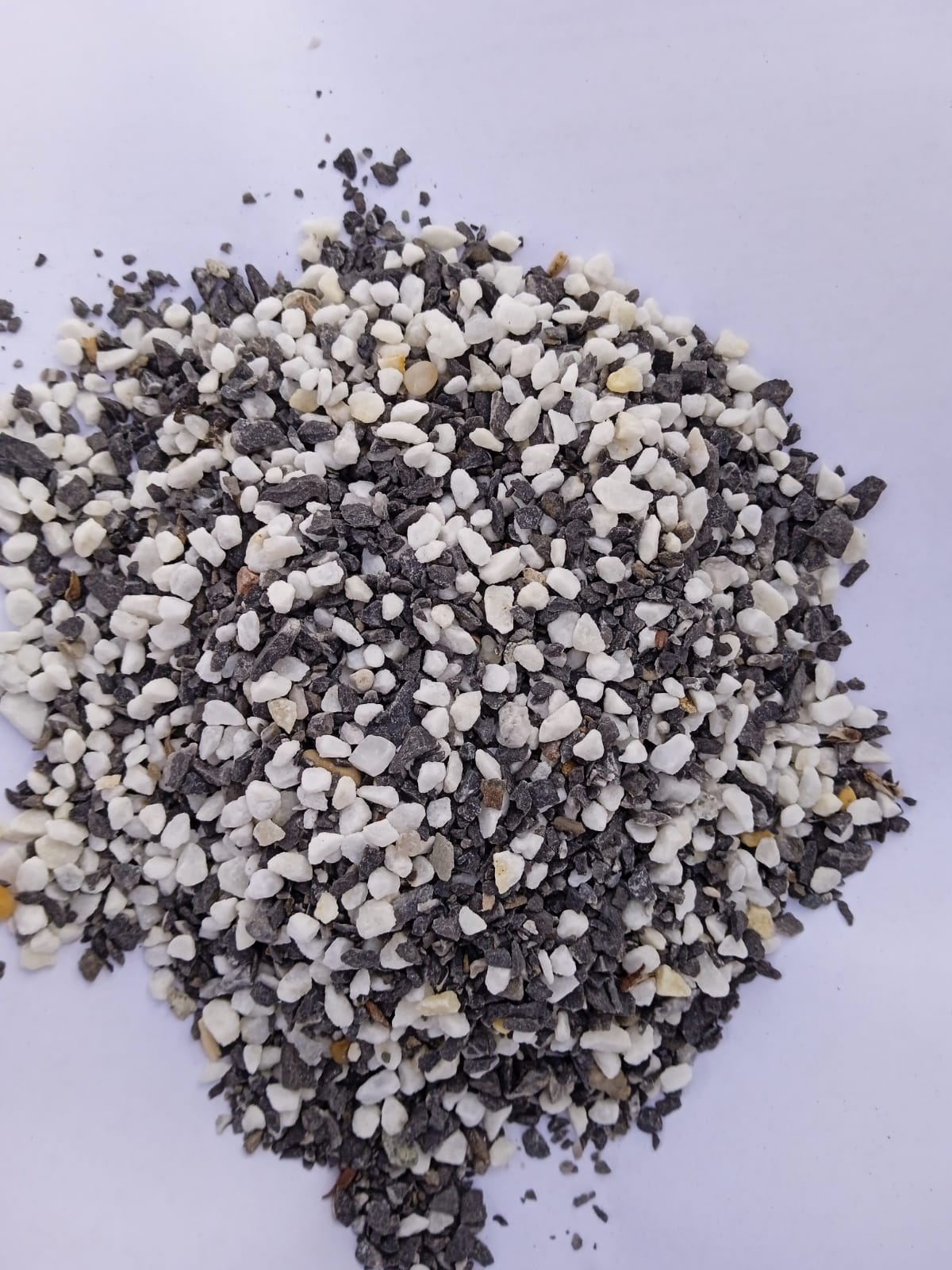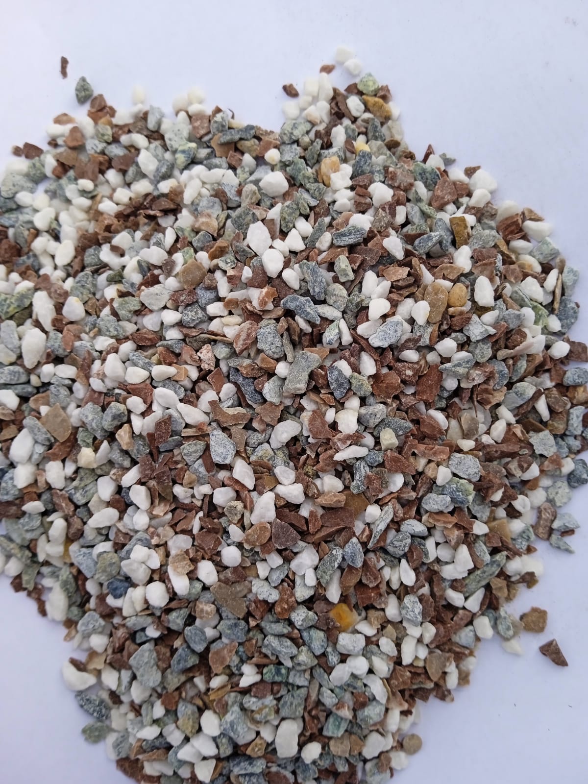 • Мраморная крошка (щебень галтованный микс:белый-черный-розовый-медовый) фр.5-10 мм.